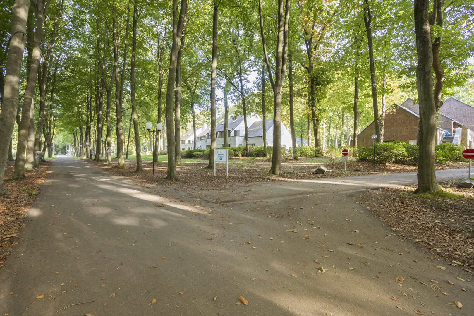 Wanderwege im Wald, einen Spielplatz mit Sand und Rutschen für die Kleinen sowie einen Basketball- und Spielplatz für die größeren Kinder.